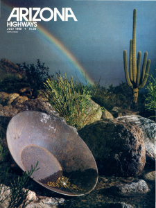 The text explores Arizona's rich mining history and the enduring allure of gold. It highlights the dreams, dangers, and fortunes associated with gold prospecting, both past and present, in the Arizona territory.