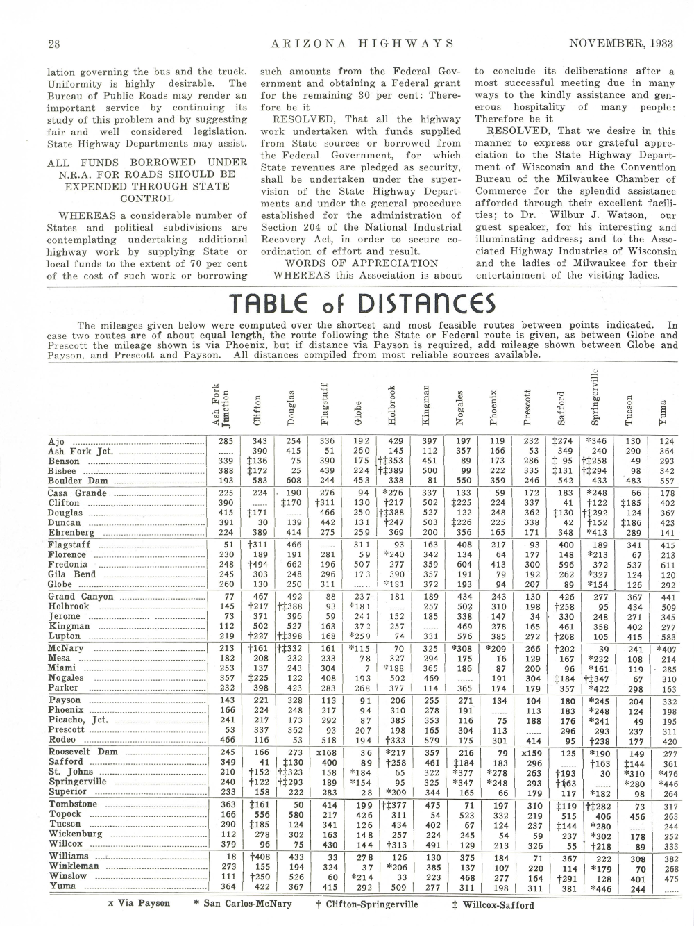 Table of Distances
