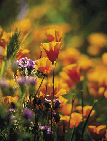 SET OFF FOR THE SUPERSTITION MOUNTAINS in the flush of a Sonoran Desert spring, impelled by a familiar seasonal urge of still mysterious portent. I do not know why the uncertain promise of desert wildflowers every spring draws me as helplessly as a hummingbird mainlining nectar. Why do I scan the November skies for rain, thinking always of the blooms of March? Why do I dream of purple hillsides? Why do thousands of people troop through Picacho Peak State Park in a good flower year? Why can I still recall every good patch of flowers 10 years later? Why does the mere thought of seeds waiting in the stony soil excite me? I can't tell you. I only know that every March I must seek out the capricious gifts of spring. So I call in sick and head for the front slopes of the Superstitions as soon as the Desert Botanical Garden's wildflower hotline puts out a poppy alert. I park at the Lost Dutchman State Park and hurry up the trail, festooned with camera gear, driven by some frivolous version of the gold fever optimism that has long drawn prospectors to these contorted slopes. It's an apt metaphor-since these volcanic formations have no more business harboring gold than they have hiding tiny poppy seeds. I hike on up the slope, drawn by a hallucinatory shimmer of color ahead of me. Rounding a boulder with my eyes fixed on the slope ahead, I nearly trip over the old woman sitting on an igneous stool jutting into the trail. I stumble; she stands, steps back and reaches out for my elbow. She starts the gesture to steady me, but then sways forward off balance so we prop up one another. We sway awkwardly together, then right ourselves. "Sorry," I blurt, "I wasn't watching where I was going. It's the flowers." "Darn flowers," she says. "They're very distracting," I say. "They do take your mind away," she agrees, wistfully. We fall easily into conversation, for we sense our common purpose. Besides, she reminds me of my mother. She looks to be in her early 70s, neatly dressed with shoes too nice for the trail and her silver-white hair sprayed into respectful decorum. She has mild, kind, deep-brown eyes, the patient eyes of a woman who has kept everyone tucked in and pulled together without taking more than a crust of credit. She had lived a loving and ordinary life. She was raised in a little Ohio town and met the love of her life during World War II just before he was shipped off to the Pacific. He managed to return safely to her, so they married, bought a little house and started having kids. He used to have bad dreams about those Pacific islands, but she would sit and soothe him back to sleep. They grew together like cottonwood roots. He liked action movies, she liked romances so they traded off choosing the movie. He liked hunting and she let him go off and do it because men are odd and you have to let them be sometimes. She was baffled by his desire to shoot deer until she realized it was just his excuse for going out into the woods. She came to understand that their differences linked them as surely as their similarities and perhaps explained why they never got bored with one another. They stayed married for 51 years and raised four children before the cancer took him. Now she has come out to visit her boy, who lives in Phoenix. Her son, a computer engineer, went off to work and she read in the newspaper that the wildflowers were blooming in the Superstitions, so she had set out to have a look. Ever since her husband died, she's been doing little things like this, seeking out some scratchy, bouldery, wild place. She feels close to him in such places, although sometimes it gives her a sharp pang of regret that she didn't go with him on his hunting tripseven if it was just to sit in camp and wait for him. Of course, there's nothing more useless than regret, she says. At length, I leave her to her memories and the flowers, and head on up the slope, thinking about my mother and how much she would have liked the woman and the cockeyed optimism of the wildflowers now waving in the warm breeze on every hand. I turn off the trail in a Wizard of Oz patch, hopping from boulder to boulder across the pond of poppies. I come to rest finally on a twist of lava in an orange inflorescence. I understand now. I seek out the flowers because they die, but return. I seek out the flowers because they persist, despite the harvester ants and the terrible droughts. I seek out the flowers because they glory in the light for their translucent moment, then set seed as an act of faith. I seek out the flowers because my mother loved them, as I love them, as my children love them. And I laid flowers on my mother's grave not in mourning but in hope of spring. As the light fades, I go back down the trail to thank the old woman. But she is gone. I hope she reads this.