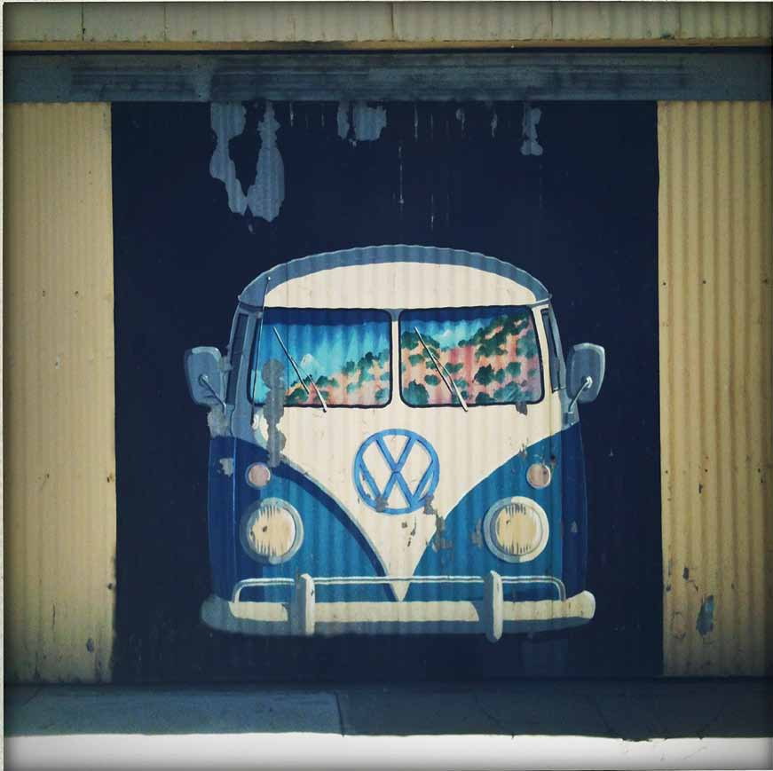 Although it wouldn't be unusual to find a vintage Volkswagen Bus in this historic town, this “bus” a mural - can't hit the road. Instead, it adorns the exterior wall of one of the town's garages and reflects the hillsides that surround this Arizona travel destination.