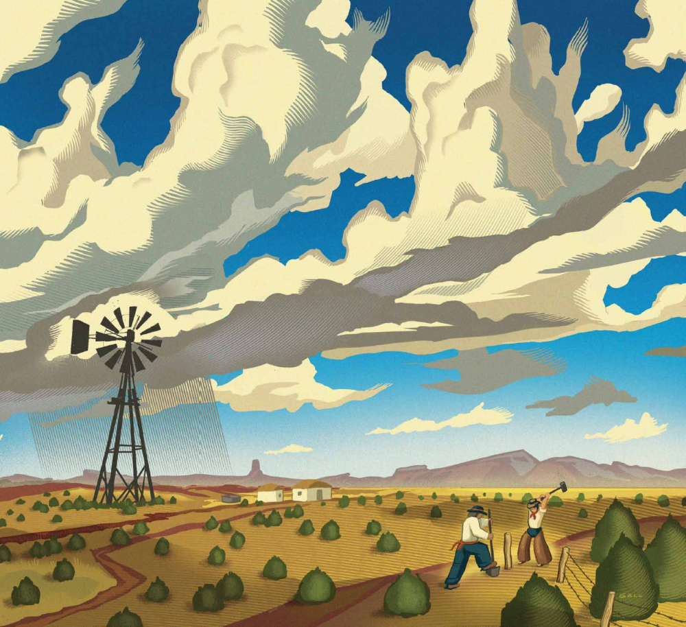 I say that cowboys fly. Some fly more often than others, some higher than others, but they all take wing when they find themselves in the big middle of an astoundingly lucky, risky and perfect performance of cowboy skills. Grover could already do anything a cowboy needs to do. He often flew when he rode horseback to turn back the bovine, but he could also stay on the ground, put on his brogans, fix fence and windmills, dig postholes, and service pump engines. I camped with him months at a time. He baked good baking-powder biscuits every morning and taught me to keep a clean camp.