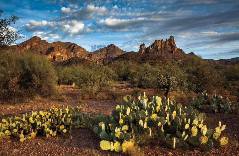 Relationships are funny things. To make them work, you have to compromise. The same rule can be applied to scenic drives. Some scenic drives, anyway. Queen Valley Road in the Superstition Mountains is a good example. If you're like my driving com-panion, Jon, who loves the adrenaline rush that comes from plowing across boulder-strewn terrain, then you'll love the second half of this drive. It requires four-wheel-drive, which makes me nervous, because all I can think about in those scenarios is driving off a cliff. If you're like-minded, and prefer stunning views to white-knuckle switchbacks, then the first half of this trek will be right up your alley. After turning left onto Queen Valley Road off of U.S. Route 60, east of Phoe-nix, we drive more than a mile before turning right onto Forest Road 357 (Hewitt Station Road), which is where we zero out the odometer to officially measure this scenic drive. The road meanders for a good 2 miles before hit-ting Forest Road 172, on the left. The turnoff is well marked but requires some attention - there are several offshoot roads for quads and bikes. The dirt road quickly narrows, and at mile 3.5, we come to a fork. Unsure, we veer right. The landscape is at once brutal and beautiful. Owl clover and Mexican goldpoppies are juxtaposed against the harsh, jagged hills. Around mile 5.3, we drop deeper into the Superstitions' inner sanctum. As the canyon walls close in around us, layers of rock appear otherworldly. Spindly cactuses cover the As it winds through the Superstition Mountains, Queen Valley Road offers a little something for everyone - gorgeous landscapes for sightseers, and extreme terrain for adventurous spirits. BY KATHY RITCHIE PHOTOGRAPHS BY GEORGE STOCKING wheel-drive. As we crawl over small boulders, the road narrows, and navigating it requires some finesse. Jon is in his element and loves every moment. Fists clenched, I decide compromise is for the birds.