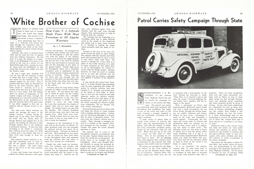 The meeting was the beginning of a friendship which was to make Jeffords noted in the annals of the Southwest and which was to later assist General O. O. Howard in making the treaty which prevailed until the death of Cochise.