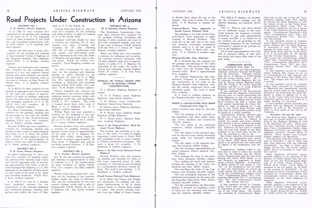 G. B. Shaffer, District Engineer N. G. Hill Co. have contract 24% completed for the grading and draining of 9.8 miles on U. S. 66, beginning about 32 miles northwest of Ash Fork Jct. and extending northwesterly, N.R. Η. 80-H (1935). R. D. Canfield, resident engineer.