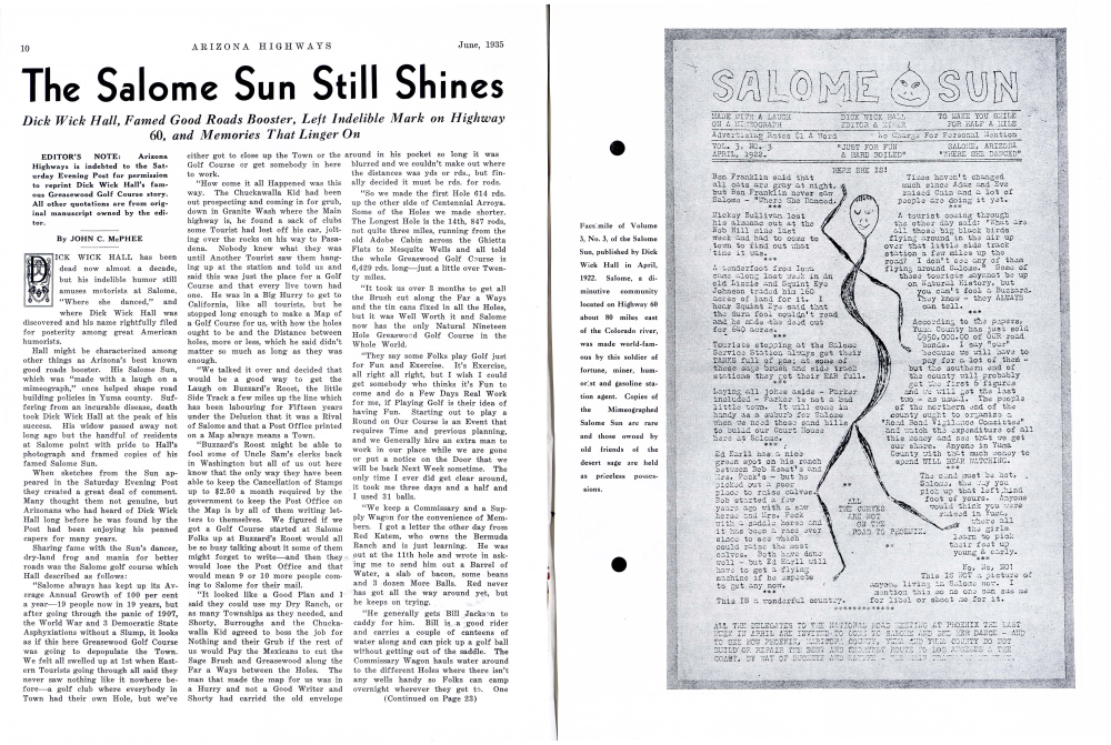 The Salome Sun Still Shines Dick Wick Hall, Famed Good Roads Booster, Left Indelible Mark on Highway 60, and Memories That Linger On