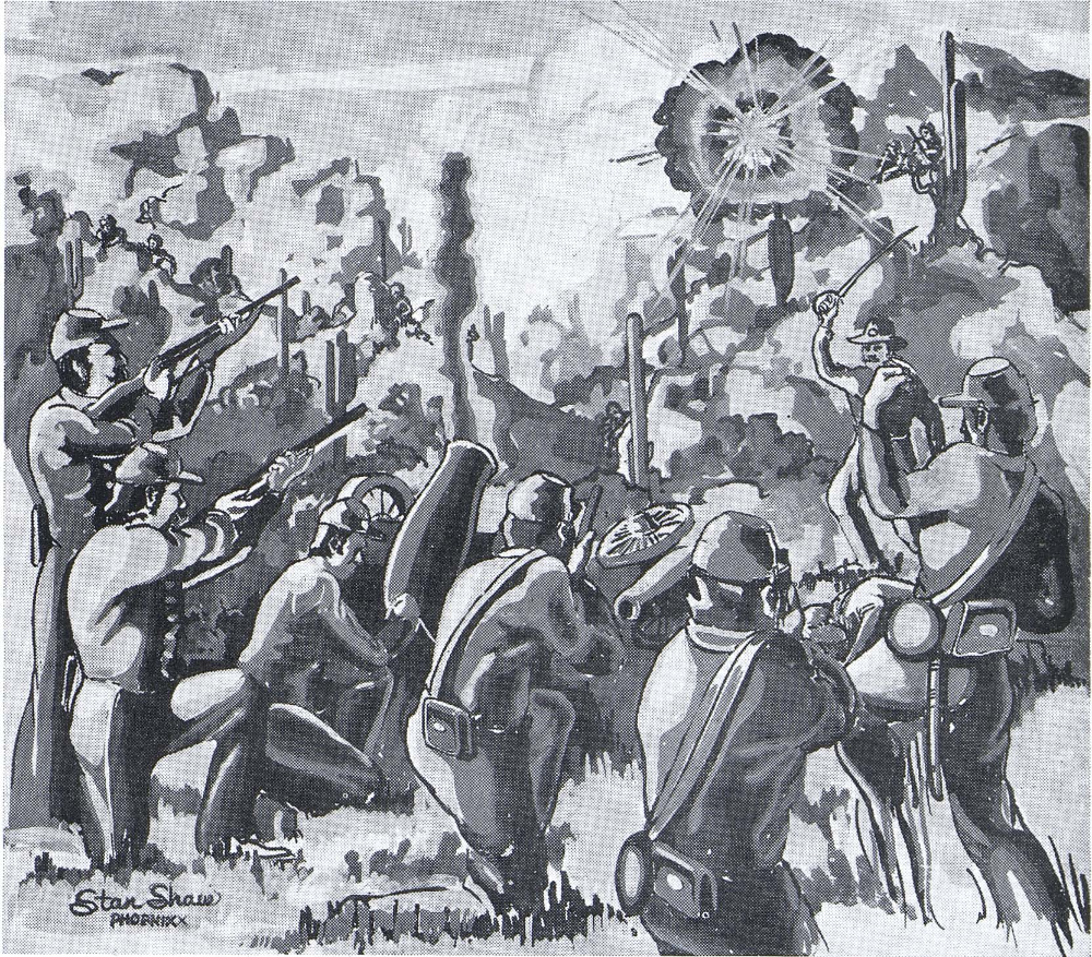 Captain Thomas Roberts, of the Infantry, and Captain John C. Cremony, of the Cavalry, were in command of the advance troops pushing their way slowly eastward towards the Rio Grande. A long train of wagons loaded with military stores was also a part of this forward section of the California column. It being necessary to learn if Dragoon Springs contained enough water to supply all of the advance troops at one time, Captain Roberts set out with three wagons, his Infantry, and seven troopers of Captain Cremony's Cavalry to determine the situation. He reached Dragoon Springs without incident and sent back two troopers to Captain Cremony with word that there was an abundance of water at Dragoon Springs for their entire outfit and to push through with the wagon train. When Captain Cremony arrived at Dragoon Springs, Captain Roberts then set out for the next water at Apache Pass, leaving Captain Cremony to follow (Continued on Page 20)
