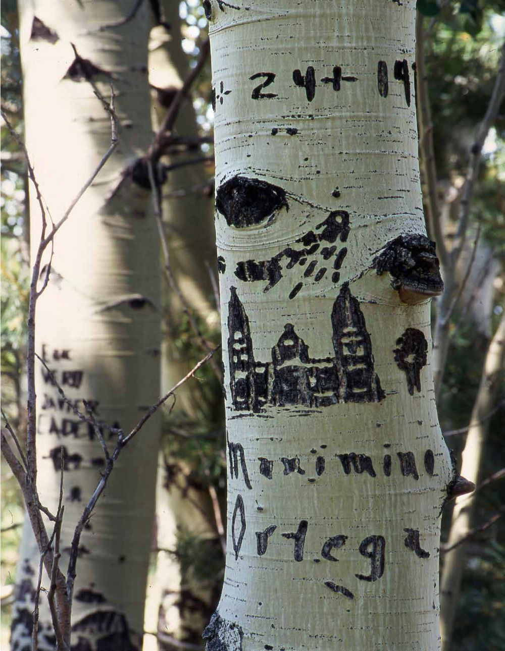 Sometimes, you find just a name and a date. A lot of aspen carvings, Haines says, happen because you want to let someone know you exist. You want to speak to somebody. You don’t know who will be listening, but you want to say: This is who I am. I was here, and I am somebody.