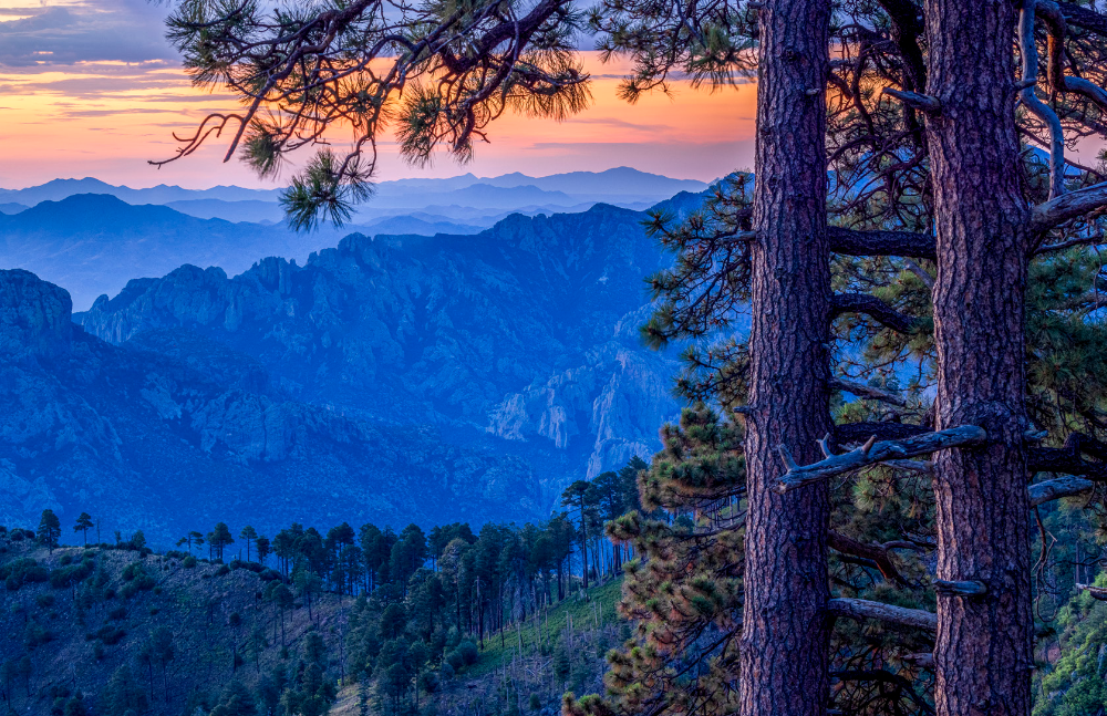 PRECEDING PANEL: Jagged mountains form a layered panorama at sunrise in a view near Rustler Park, part of Southeastern Arizona's Chiricahua Mountains. Named for the cattle thieves who once holed up there, Rustler Park is known for its birding and wildlife-watching opportunities.