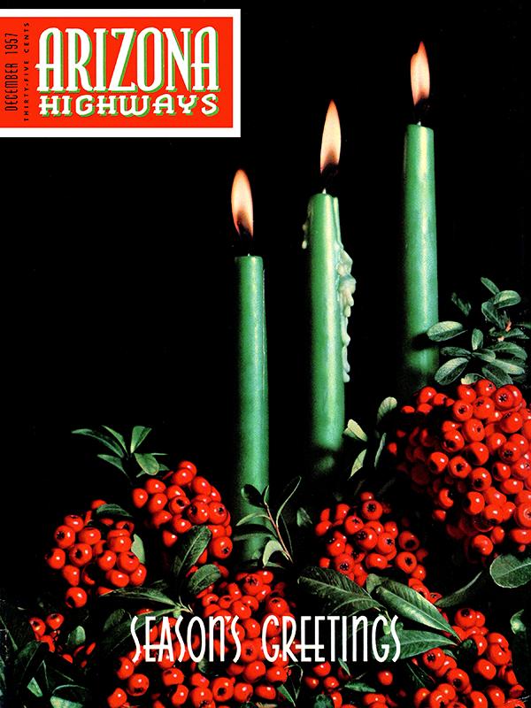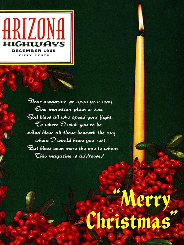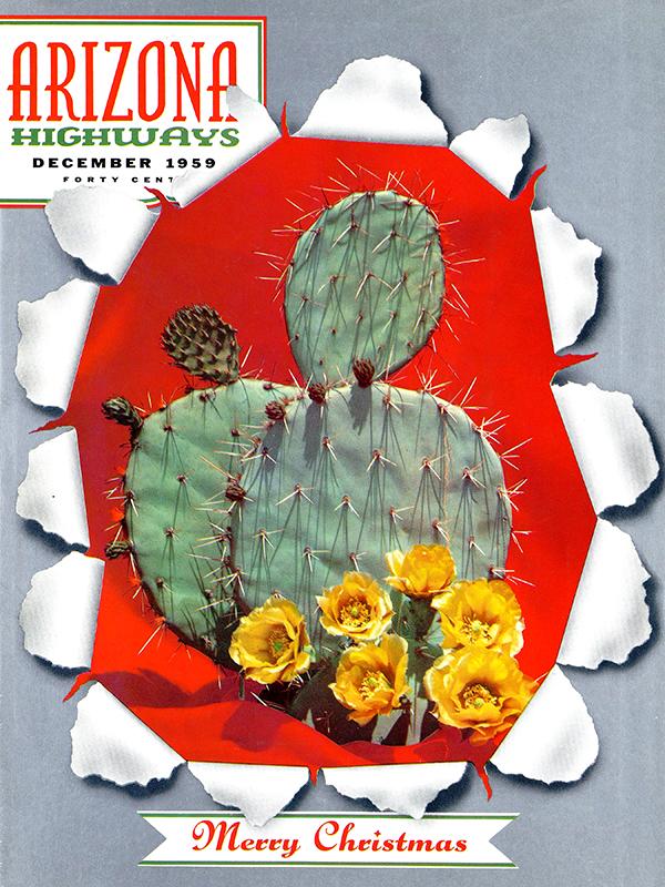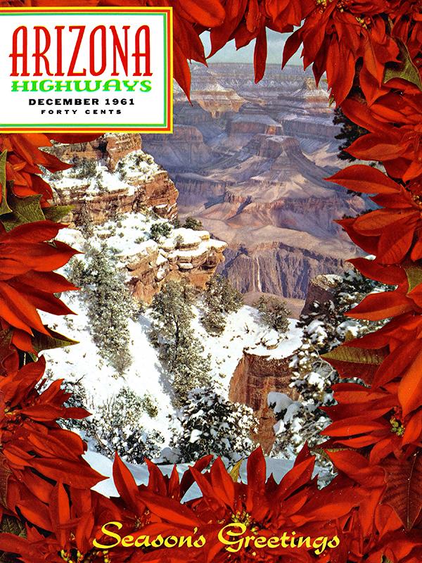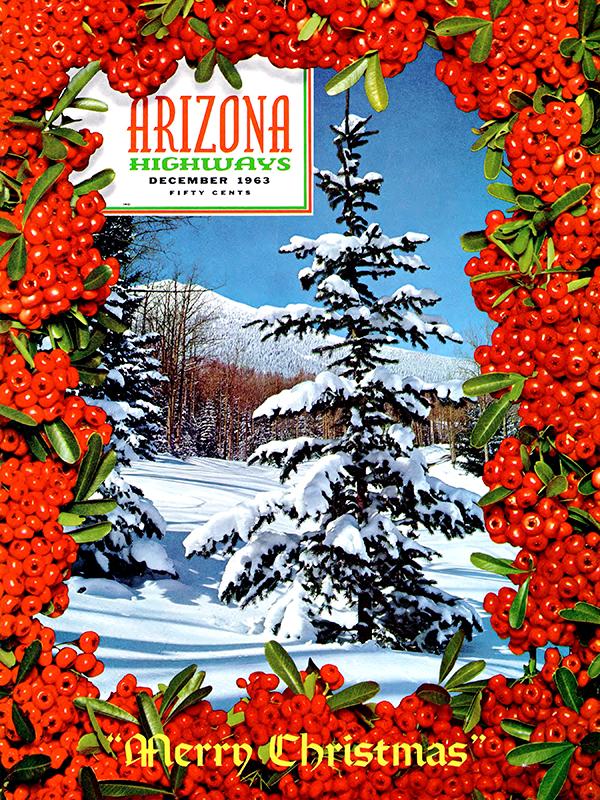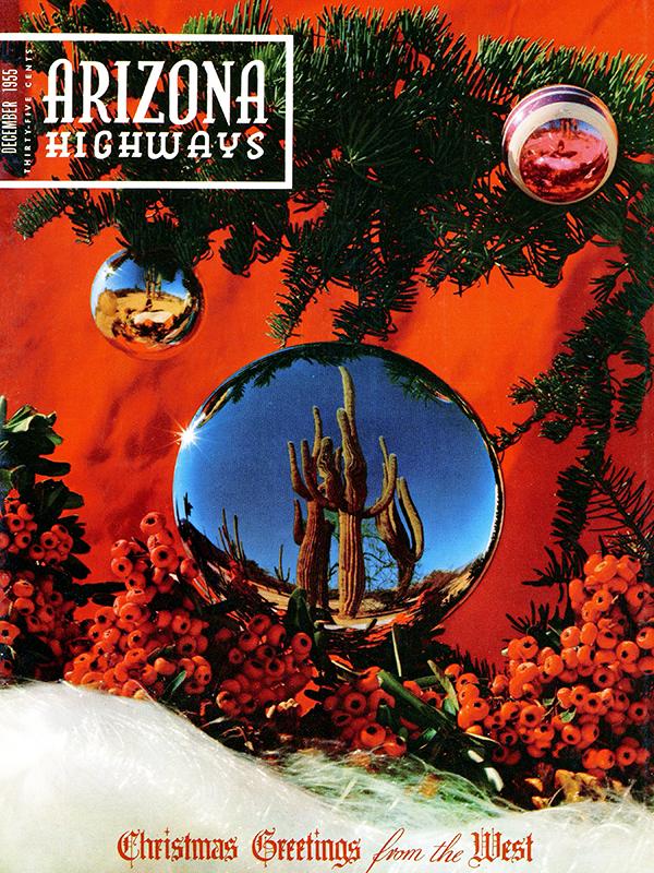 The cover looks like a Christmas card, and that was intentional. Jim Stevens, our visionary business director, understood that our December issues could be used to boost subscriptions around the world. “Americans were on the move,” Don Dedera, our 10th editor, wrote about the post-Depression era. “And to keep in touch with one another, they turned to the greeting card. And those who touched or traversed Arizona in those days chose Arizona Highways as their premier holiday card. They might send five-cent cards to their friends, but to Mother, they mailed a 10-cent copy of Arizona Highways.”