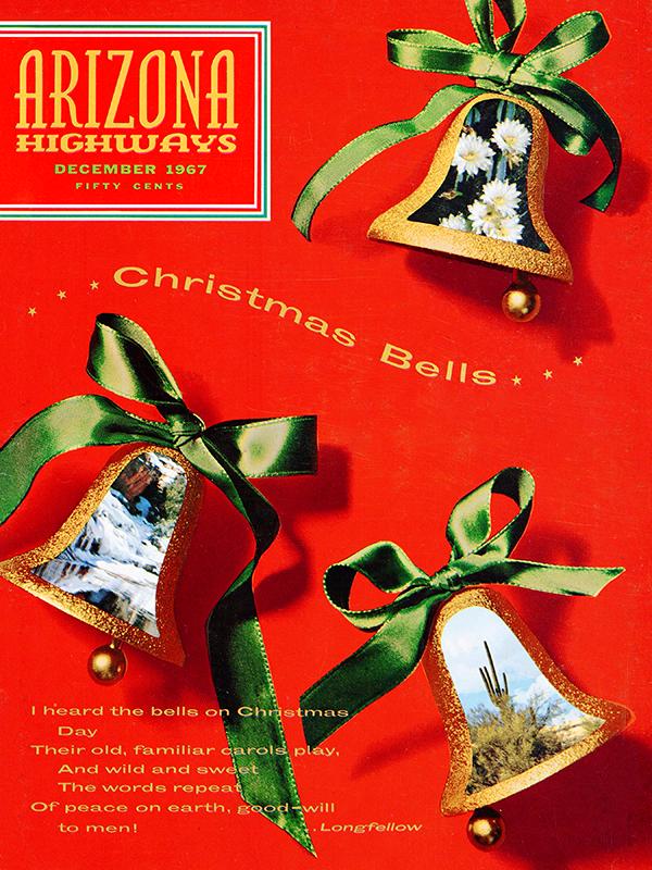 When that issue rolled off the presses two months later, it was, indeed, brimming with a Christmas motif. Mr. Carlson put a cross on the cover — it’s a beautiful photograph of Mission San Xavier del Bac by Esther Henderson — and inside, there were seven stories dedicated to the holiday. The next year, Mr. Carlson shared his intent to make our December issues something special. “These are the days of the Yuletide,” he wrote, “when the Christmas bells ring out. In deference to the season, and as special greetings to all the world from Arizona, Arizona Highways fits itself in more colorful dress than usual and joins the gaiety of Yule.”