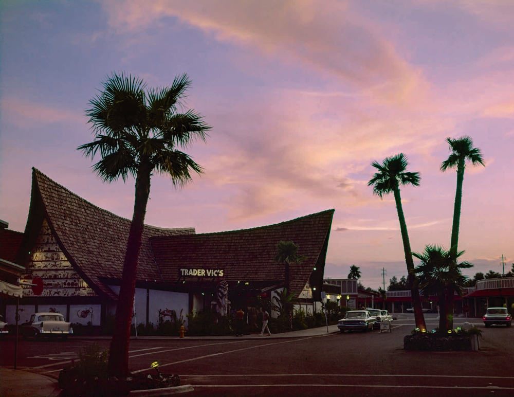 Palm trees mark a sunset view of Trader Vic’s, a Polynesian-themed restaurant on Fifth Avenue in Old Town Scottsdale. The restaurant opened in 1962 and closed in 1990; Citizen Public House now occupies this location.