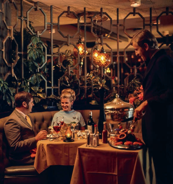 The McLaughlins’ commercial work included this promotional shot for Paul Shank’s, the restaurant at the Safari Hotel in Scottsdale. Designed by prolific architect Al Beadle, the Safari, near Camelback and Scottsdale roads, operated from 1956 to 1998.