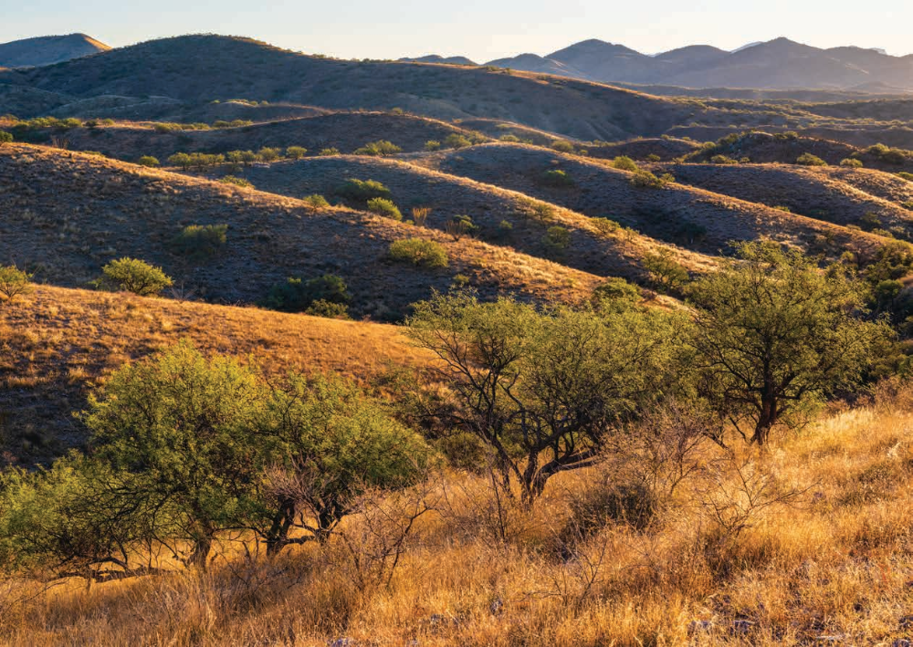 In the old days, the story goes, three oak trees marked the U.S.–Mexico border at the end of a broad, shallow canyon south of Arivaca. No one knows for sure whether that’s how Tres Bellotas Canyon — Spanish for “three acorns” — got its name, but there’s no doubt about the scenery along Tres Bellotas Road, which winds through mountains and desert washes en route to its namesake landform.