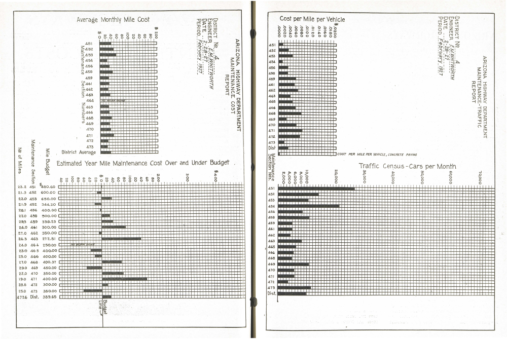 ARIZONA HIGHWAY DEPARTMENT MAINTENANCE COST REPORT Average Monthly Mile Cost