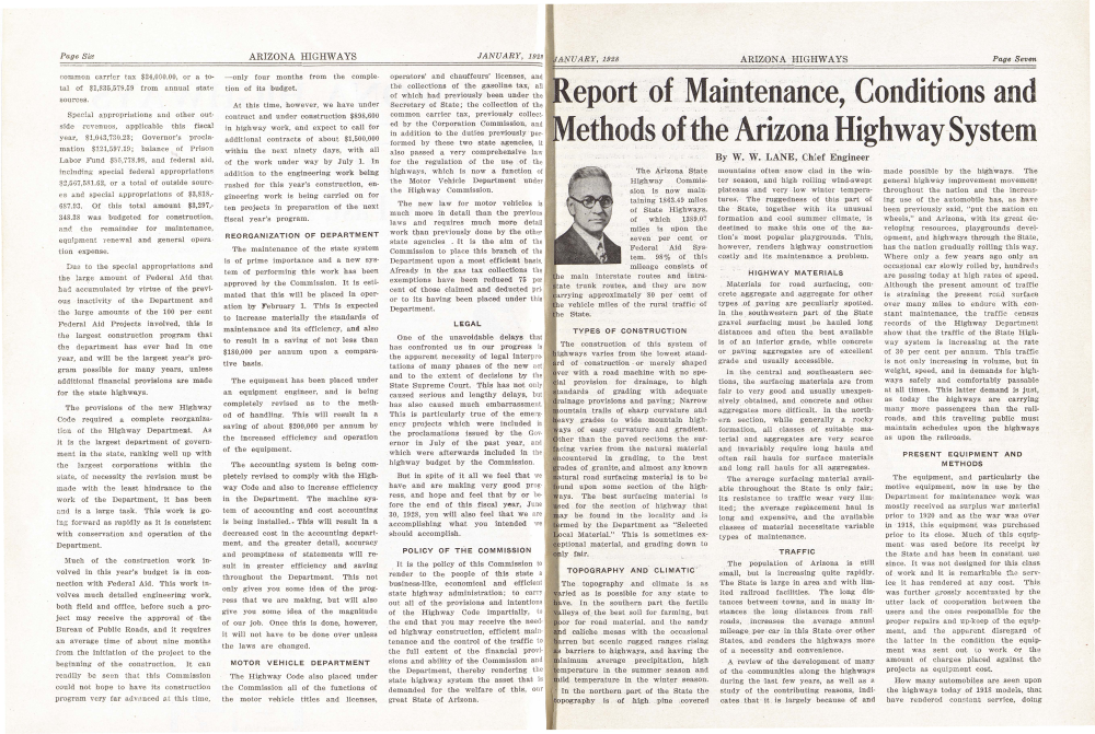 It is the policy of this Commission to render to the people of this state a business-like, economical and efficient state highway administration; to carry out all of the provisions and intentions of the Highway Code impartially, to the end that you may receive the needed highway construction, efficient maintenance and the control of the traffic to the full extent of the financial provisions and ability of the Commission and the Department, thereby rendering the state highway system the asset that is demanded for the welfare of this, our great State of Arizona.