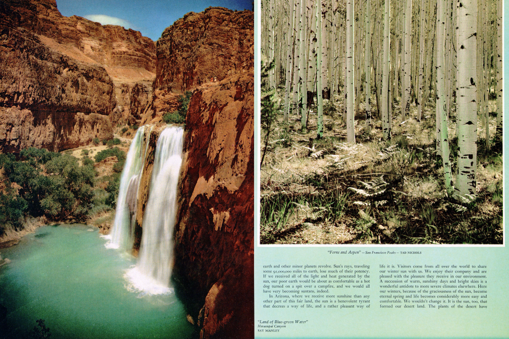 In Arizona, where we receive more sunshine than any other part of this fair land, the sun is a benevolent tyrant that decrees a way of life, and a rather pleasant way of Life it is. Visitors come from all over the world to share our winter sun with us. We enjoy their company and are pleased with the pleasure they receive in our environment. A succession of warm, sunshiny days and bright skies is a wonderful antidote to more severe climates elsewhere. Here our winters, because of the graciousness of the sun, become eternal spring and life becomes considerably more easy and comfortable. We wouldn't change it. It is the sun, too, that formed our desert land. The plants of the desert have