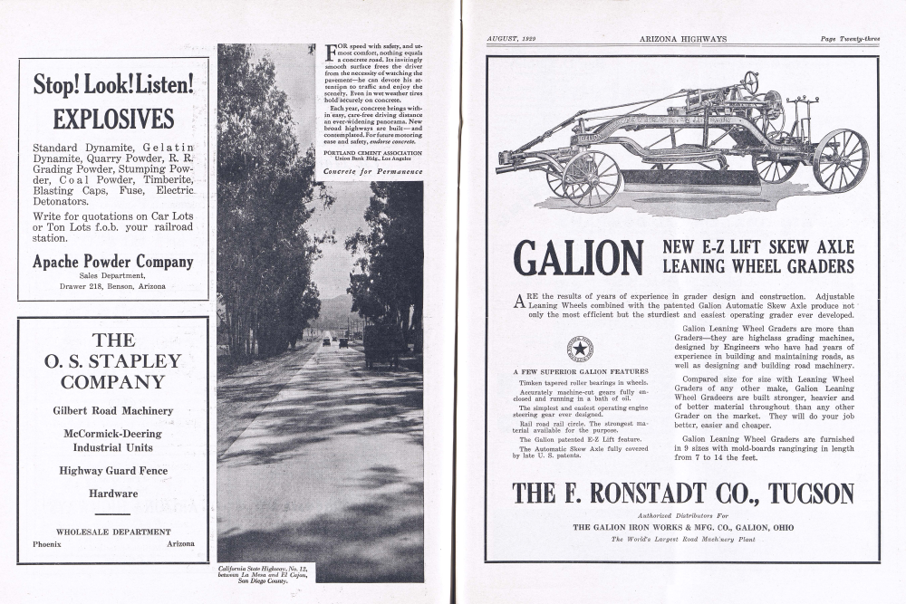 Sales Department, Drawer 218, Benson, Arizona FOR speed with safety, and utmost comfort, nothing equals a concrete road. Its invitingly smooth surface frees the driver from the necessity of watching the pavement he can devote his attention to traffic and enjoy the scenery. Even in wet weather tires hold securely on concrete.