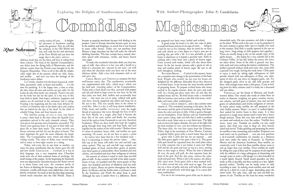 John S. Candelario, A.P.S.A.; F.R.P.S., who prepared the article on Mexican cooking in this issue, is a writer, photographer, motion picture director and producer. For distin guished work and contribution to his profession he has been awarded a fellowship in the British Royal Photographic Society, a TV Emmy, a Golden Reel Award, a Silver Reel Award and a Peabody Award. Mr. Candelario is listed in Who's Who In The West, World's Who's Who In Commerce and Industry and International Who's Who. His interest in Southwest native cooking comes naturally from a rich cultural inheri tance that dates back to the early Spanish Conquest.