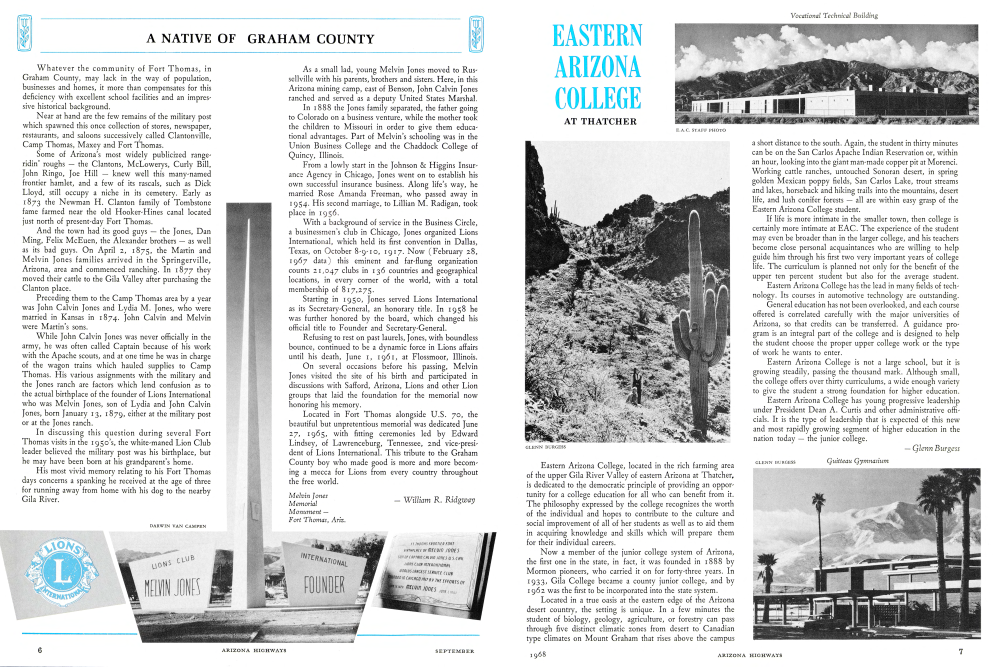 Whatever the community of Fort Thomas, in Graham County, may lack in the way of population, businesses and homes, it more than compensates for this deficiency with excellent school facilities and an impres-sive historical background.