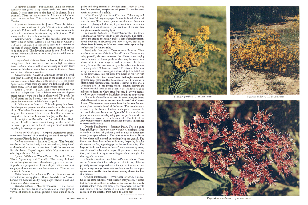 For the past several years, my son and daughter-in-law have given me your beautifully illustrated and well written publication ARIZONA HIGHWAYS. I have read and studied each page of each issue and have taken many wonderful imaginary trips through your flowering desert and colorful mountains. At the end of each year I bind the issues; thus, I am compiling a lovely collection of reference books.