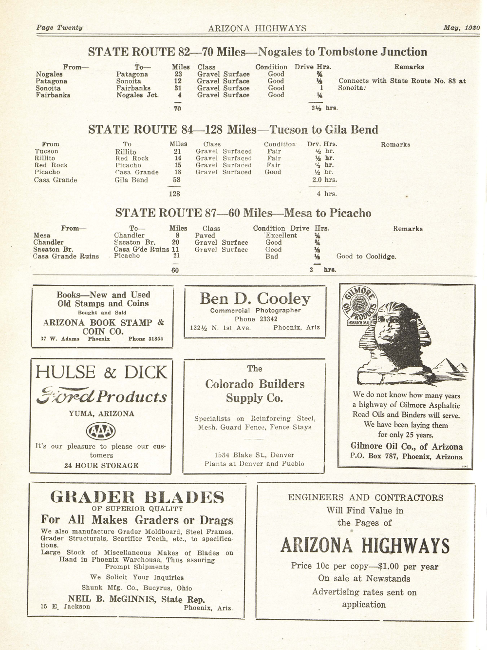 STATE ROUTE 84-128 Miles-Tucson to Gila Bend