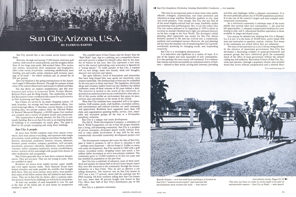 The Del E. Webb Development Company, a subsidiary of Del E. Webb Corporation, set out to fuse the proper elements into a living, self-animating community. Sun City is a product of private enterprise, developed almost totally without Federal or other public involvement. It may well be the most commercially successful community development project ever built.