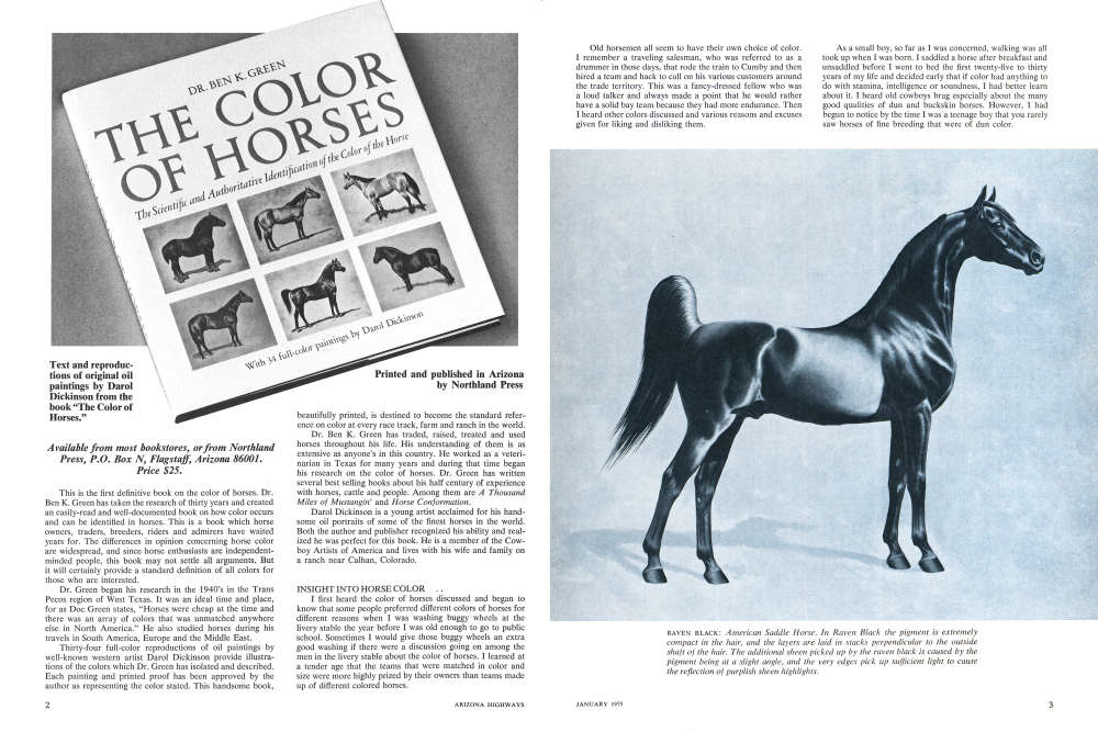 Dr. Ben K. Green has traded, raised, treated and used horses throughout his life. His understanding of them is as extensive as anyone's in this country. He worked as a veterinarian in Texas for many years and during that time began his research on the color of horses. Dr. Green has written several best selling books about his half century of experience with horses, cattle and people. Among them are A Thousand Miles of Mustangin' and Horse Conformation.