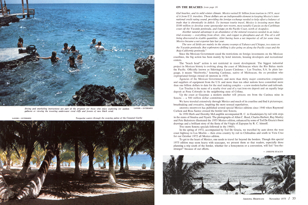 To get to the heart of Mexico, one needs to travel far beyond the borders. Though this special 1975 edition may seem heavy with seascapes, we present them so that readers, especially those planning a trip south of the border, whether for a honeymoon or a convention, will feel "less-the-stranger" because of our efforts.