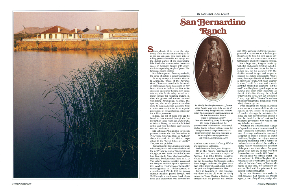 Of all the historic personages associated with this southeastern region of Arizona, it is John Horton Slaughter whose name remains synonymous with the San Bernardino. Confederate soldier, Texas Ranger, cattleman, Slaughter was a man of his times who embodied the frontier spirit that helped settle the West.