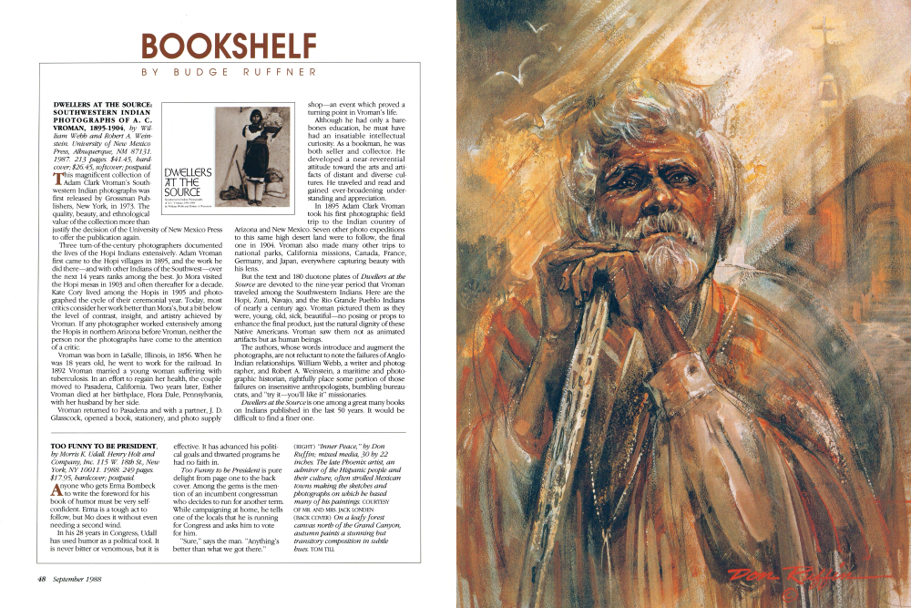 BOOKSHELF DWELLERS AT THE SOURCE: SOUTHWESTERN INDIAN PHOTOGRAPHS OF A. C. VROMAN, 1895-1904, by William Webb and Robert A. Weinstein. University of New Mexico Press, Albuquerque, NM 87131. 1987. 213 pages. $41.45, hardcover; $26.45, softcover; postpaid.