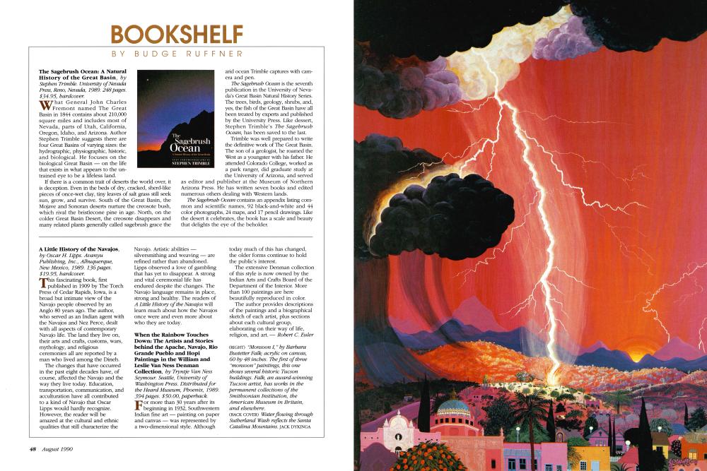 If there is a common trait of deserts the world over, it is deception. Even in the beds of dry, cracked, sherd-like pieces of once-wet clay, tiny leaves of salt grass still seek sun, grow, and survive. South of the Great Basin, the Mojave and Sonoran deserts nurture the creosote bush, which rival the bristlecone pine in age. North, on the colder Great Basin Desert, the creosote disappears and many related plants generally called sagebrush grace the A Little History of the Navajos, by Oscar H. Lipps. Avanyu Publishing, Inc., Albuquerque, New Mexico, 1989. 136 pages. $19.95, hardcover.