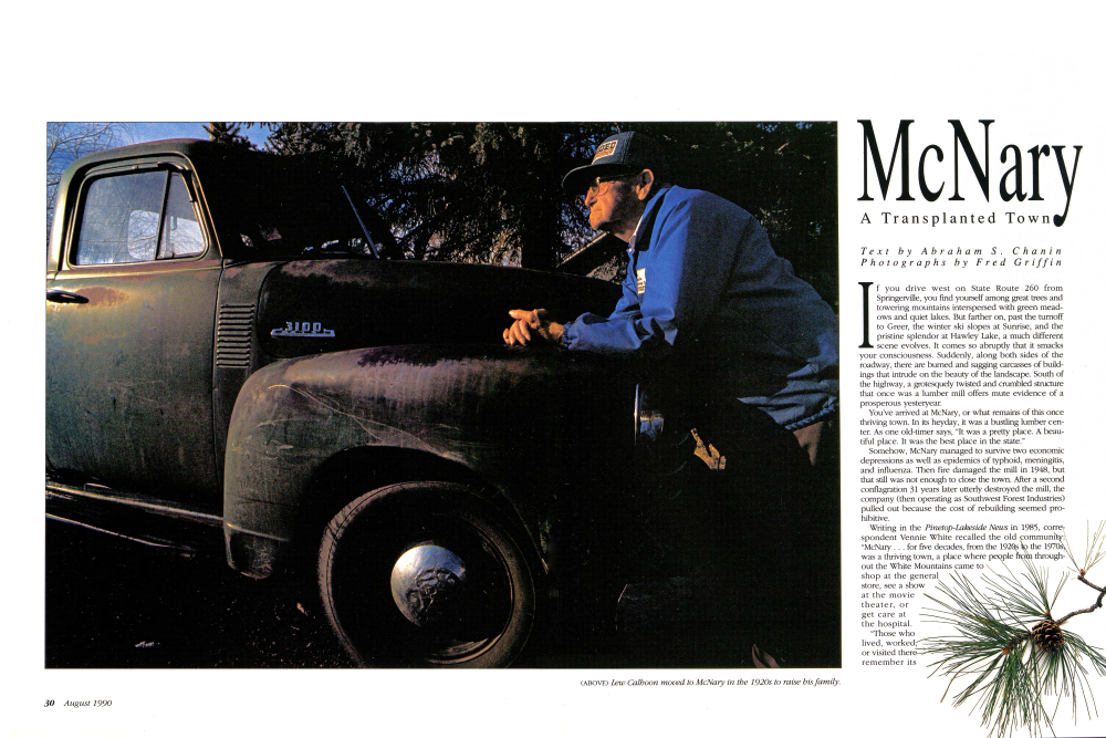 Text by Abraham S. Chanin Photographs by Fred Griffin If you drive west on State Route 260 from Springerville, you find yourself among great trees and towering mountains interspersed with green meadows and quiet lakes. But farther on, past the turnoff to Greer, the winter ski slopes at Sunrise, and the pristine splendor at Hawley Lake, a much different scene evolves. It comes so abruptly that it smacks your consciousness. Suddenly, along both sides of the roadway, there are burned and sagging carcasses of buildings that intrude on the beauty of the landscape. South of the highway, a grotesquely twisted and crumbled structure that once was a lumber mill offers mute evidence of a prosperous yesteryear.