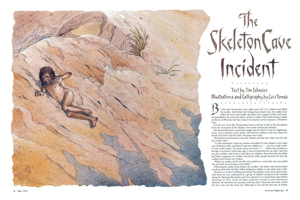 By the time Hoomothya was eight years old, U.S. soldiers had killed his mother. And before the Yavapai boy turned nine, the soldiers had killed the rest of his family: his father, his younger brother and sister, his grandfather, his aunt and uncle, and five cousins. They died during a battle northeast of Phoenix that has come to be known as the massacre at Skeleton Cave.
