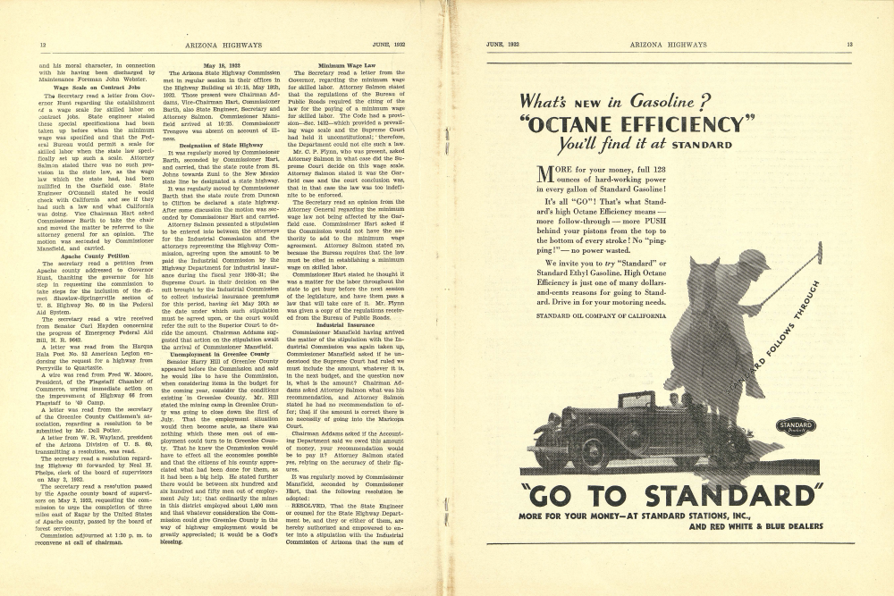 JUNE, 1932 ARIZONA HIGHWAYS 11 The Arizona State Highway Commis-sion met in regular session in their offices in the Highway Building at 10:15 A. M., May 7, 1932. Those present were Vice-Chairman Hart, Commissioners Barth and Mansfield, also State Engi-neer, Secretary and Attorney Salmon. Chairman Addams and Commissioner Trengove were absent on account of illness.