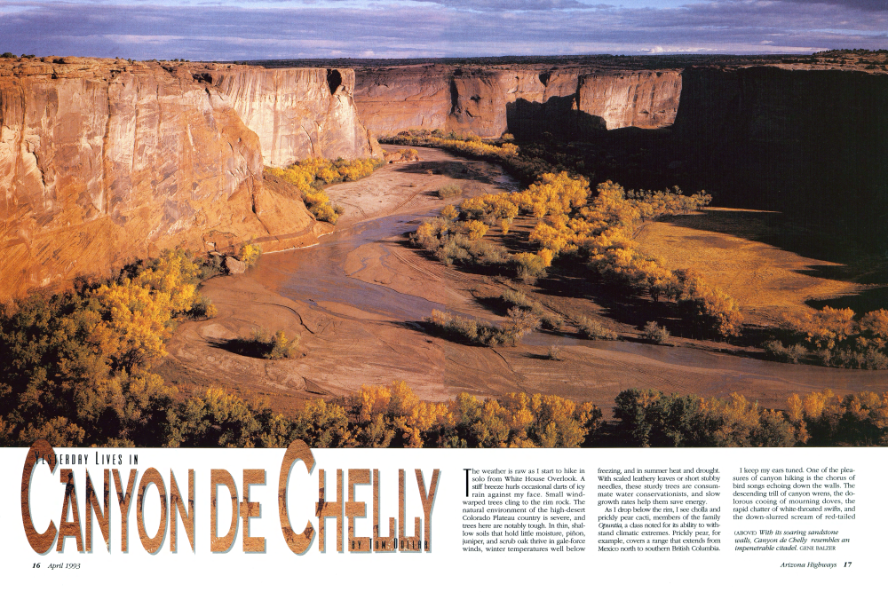 Canyon de Chelly, pronounced "d'Shay," is probably a Spanish corruption of the Navajo word tségi, meaning "rock (OPPOSITE PAGE) White House Ruin, one of 12 major prehistoric cliff dwellings in the canyon, offers a glimpse into the lifeways of Indians who lived on the Colorado Plateau centuries before white men arrived.
