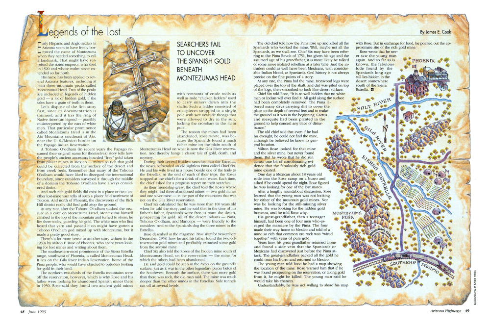 The reason the mines had been abandoned, Rose wrote, was because the Spaniards found a much richer mine on the plain south of Montezumas Head on what is now the Gila River reservation. And thereby hangs a classic tale of gold, death, and mystery.