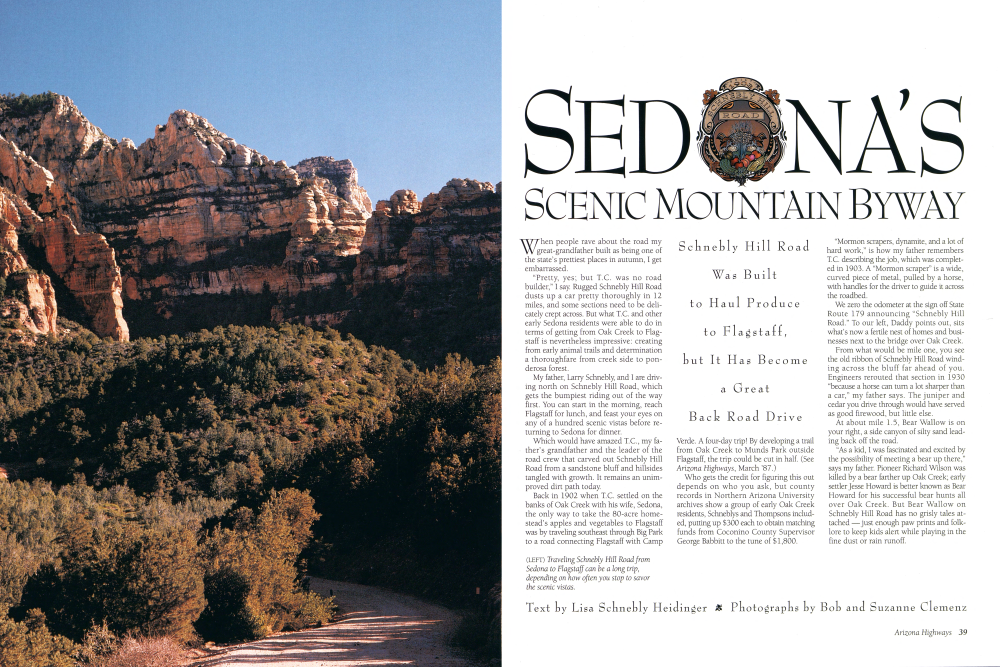 My father, Larry Schnebly, and I are driving north on Schnebly Hill Road, which gets the bumpiest riding out of the way first. You can start in the morning, reach Flagstaff for lunch, and feast your eyes on any of a hundred scenic vistas before returning to Sedona for dinner.