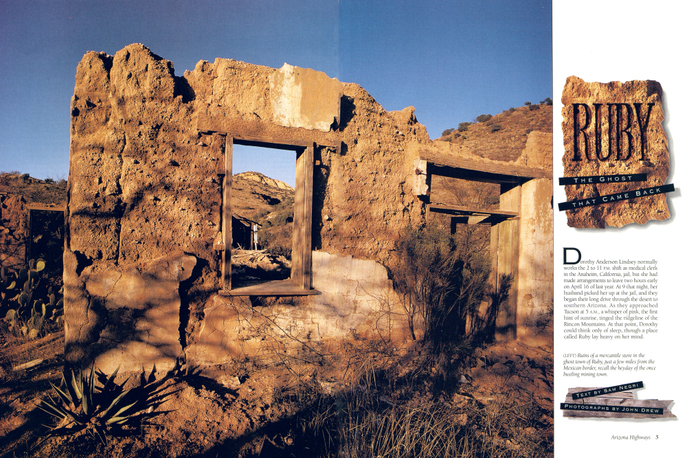 After a few hours of rest at a motel in Tucson, the Lindseys were on the road again, now headed south to the object of their marathon drive: the long-vacant ghost town of Ruby, a dusty cradle in the high desert of the Atascosa Mountains, where the childhood images that Dorothy had car-ried for years could be revisited.