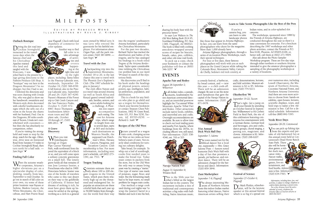 Information, including dates, fees, and activities, is subject to change; telephone to confirm before planning to attend events. For a free Arizona travel kit and a calendar of events, telephone the Arizona Office of Tourism toll-free at (800) 842-8257.
