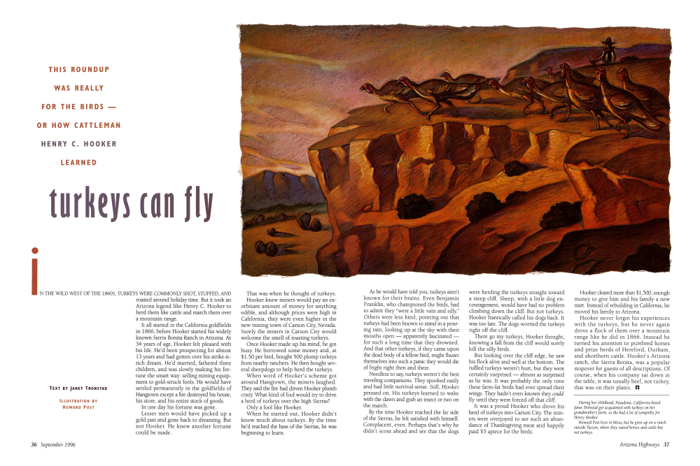 IN THE WILD WEST OF THE 1860S, TURKEYS WERE COMMONLY SHOT, STUFFED, AND roasted around holiday time. But it took an Arizona legend like Henry C. Hooker to herd them like cattle and march them over a mountain range.