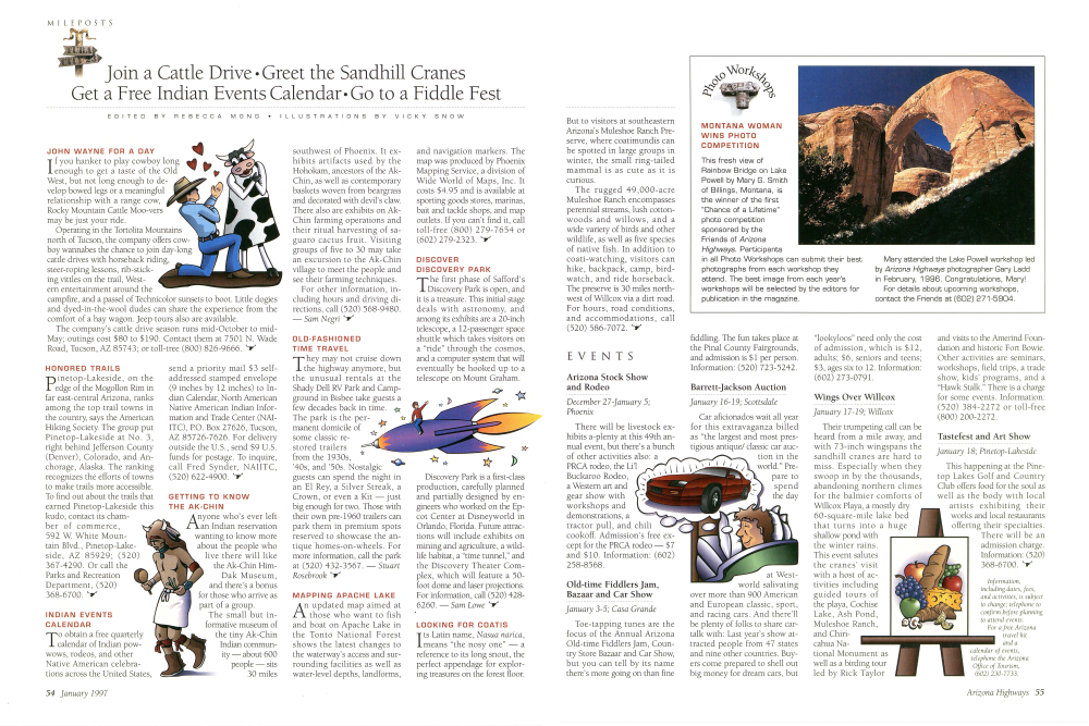 Join a Cattle Drive • Greet the Sandhill Cranes Get a Free Indian Events Calendar. Go to a Fiddle Fest JOHN WAYNE FOR A DAY