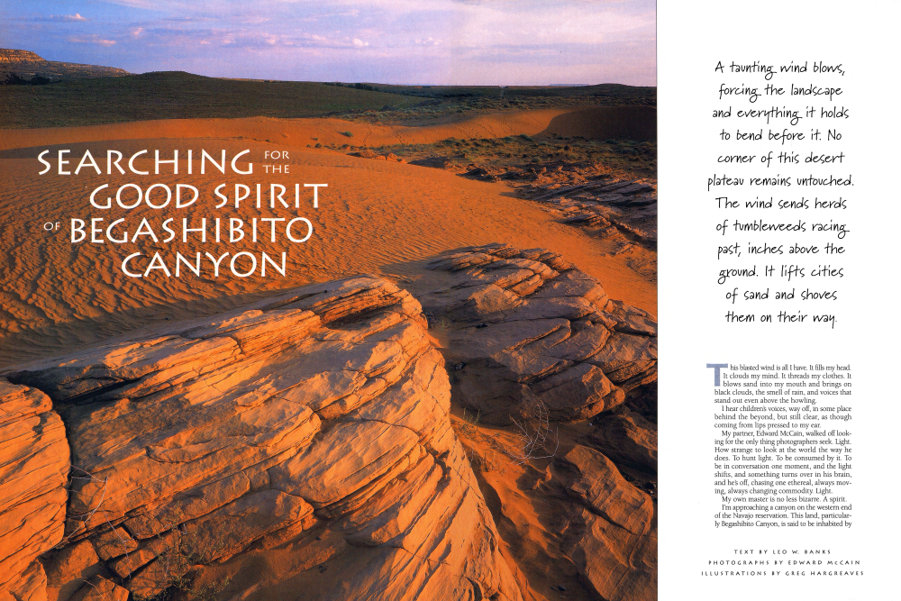 For a brief time a decade ago, Leo W. Banks taught school on the Navajo reservation in Shiprock, New Mexico. He lives in Tucson. Tucson-based Edward McCain says he can now personally confirm the spirit of Begashibito's existence. Greg Hargreaves lives in Waterloo, Iowa.