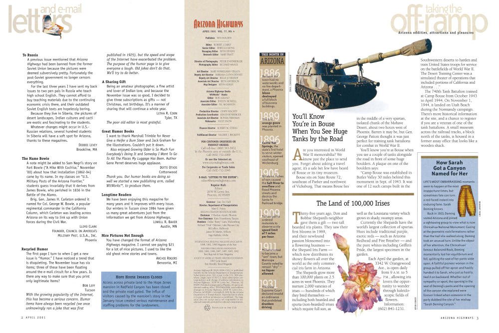 A previous issue mentioned that Arizona Highways had been banned from the former Soviet Union because the pictures were deemed subversively pretty. Fortunately the post-Soviet government no longer censors everything.