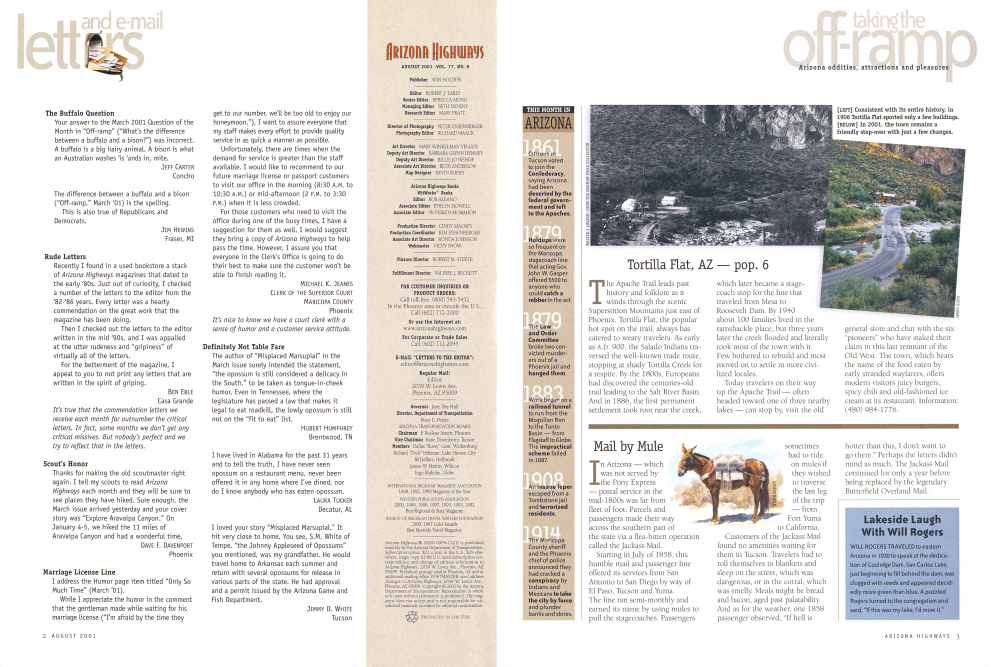 Scout's Honor Thanks for making the old scoutmaster right again. I tell my scouts to read Arizona Highways each month and they will be sure to see places they have hiked. Sure enough, the March issue arrived yesterday and your cover story was "Explore Aravaipa Canyon." On January 4-5, we hiked the 11 miles of Aravaipa Canyon and had a wonderful time.