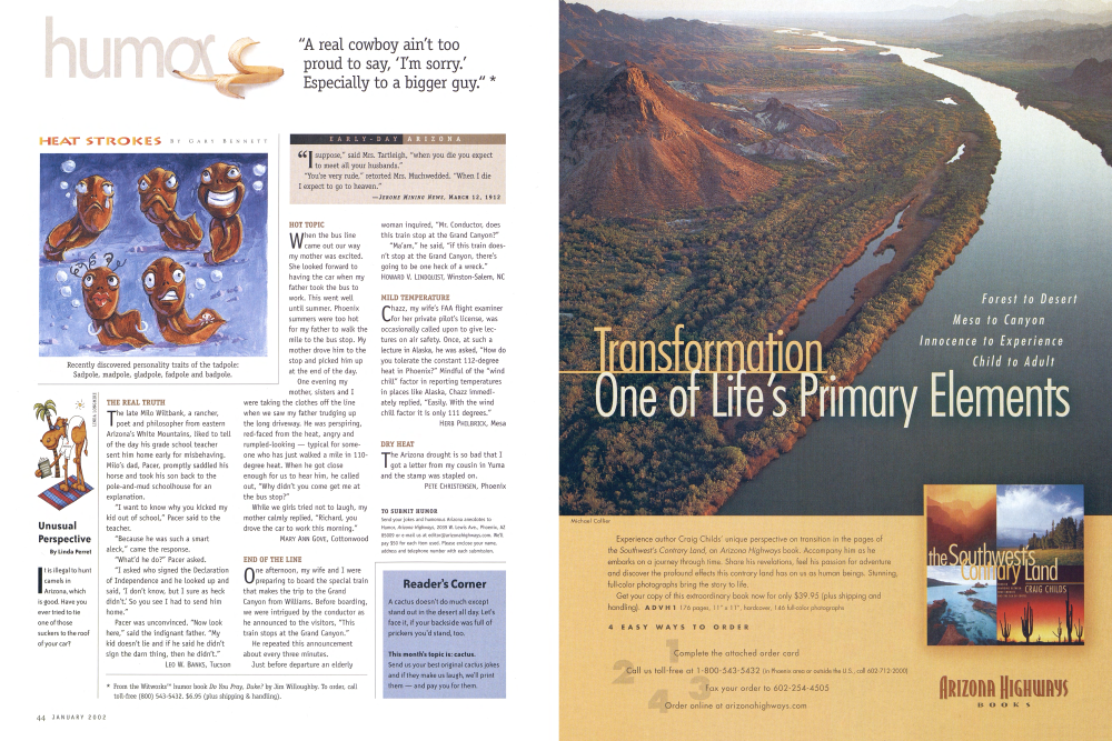 Send your jokes and humorous Arizona anecdotes to Humor, Arizona Highways, 2039 W. Lewis Ave., Phoenix, AZ 85009 or e-mail us at [email protected]. We'll pay $50 for each item used. Please enclose your name, address and telephone number with each submission.