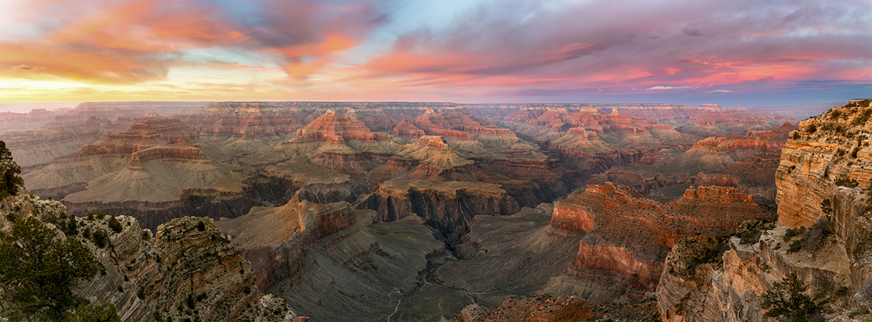 No one is ever prepared for the Canyon as one is for the gradually rising Rockies as he approaches across the plains. One simply crosses a flat plateau hirsute with cedar and great pines, and there at his feet it suddenly yawns.