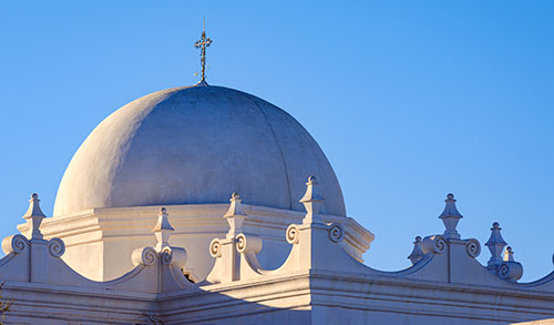 It might be argued that the dome is the purest architectural expression of form and space that humanity has devised. And this pure geometry, when it materializes into something that can be touched and felt, is itself holy, a connection to a universal truth. Classical domes, such as those of the Pantheon and Mission San Xavier del Bac, are perfect half-planets. Onion domes, such as those crowning Saints Peter & Paul Orthodox Church in Phoenix, are relatives of the geometry of a nautilus shell or spiral galaxy. When we contemplate these forms, we don’t merely see architecture taking cues from nature; we see human intelligence connecting with underlying orders of the universe.