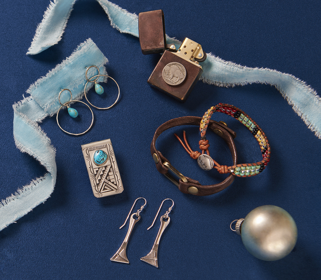 I. Cave + Post Trading Co. Buffalo Nickel Lighter or this unique accessory, a classic Zippo lighter receives a bronzing finish and is adorned with a buffalo nickel, a well-known collectible coin. Choose buffalo side out or American Indian side out. $120, caveandpost.com