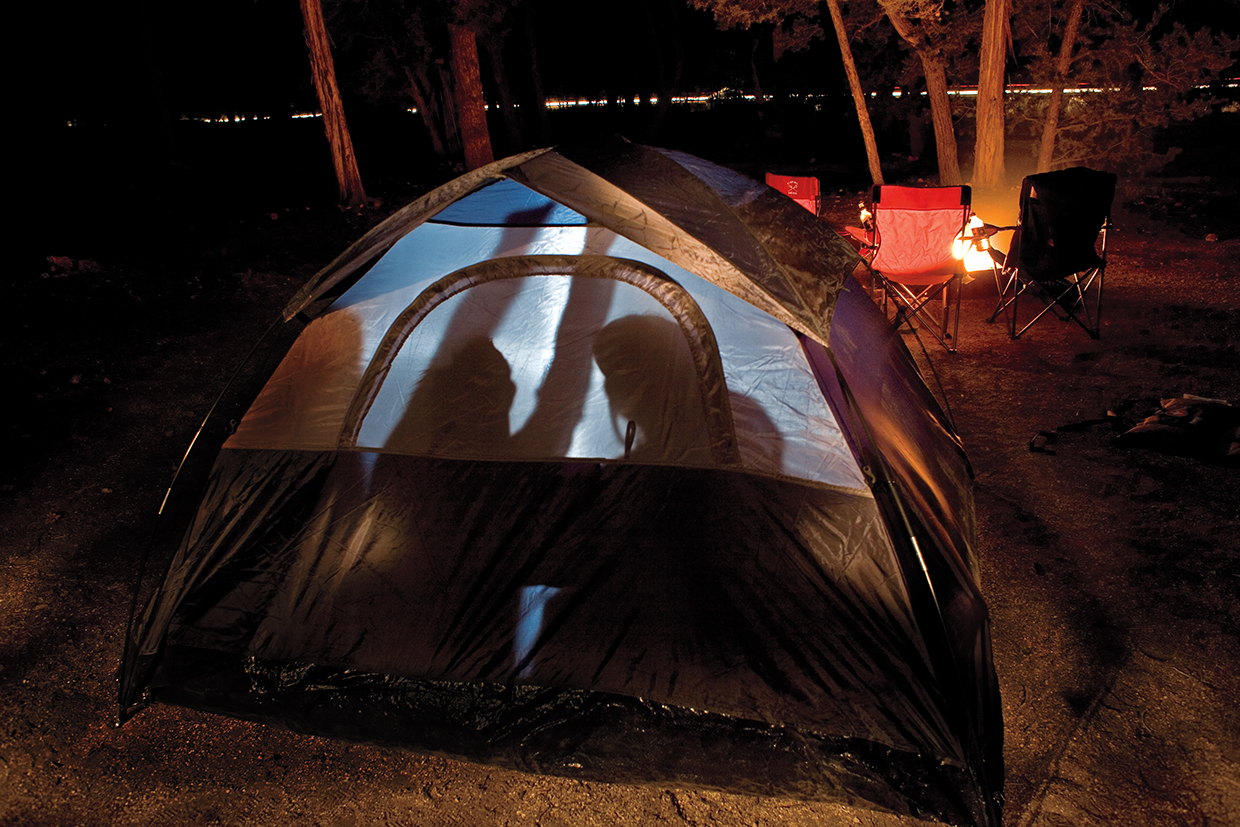 We bunny-hop out of the tent, grab our toothbrushes and makeup (we’re from Scottsdale, after all), and pile into the car, which is dead. Only a tiny clicking sound emerges from underneath the hood of my mother’s SUV. Needless to say, none of us has ever even changed a tire, so I run to Peter’s car as he’s pulling away. He gives me a lift to the home of campground host Kim Ross, who gives us a jump. Meanwhile, my friends — who have been sitting in the car the whole time — rejoice as hot air begins flowing through the vents.