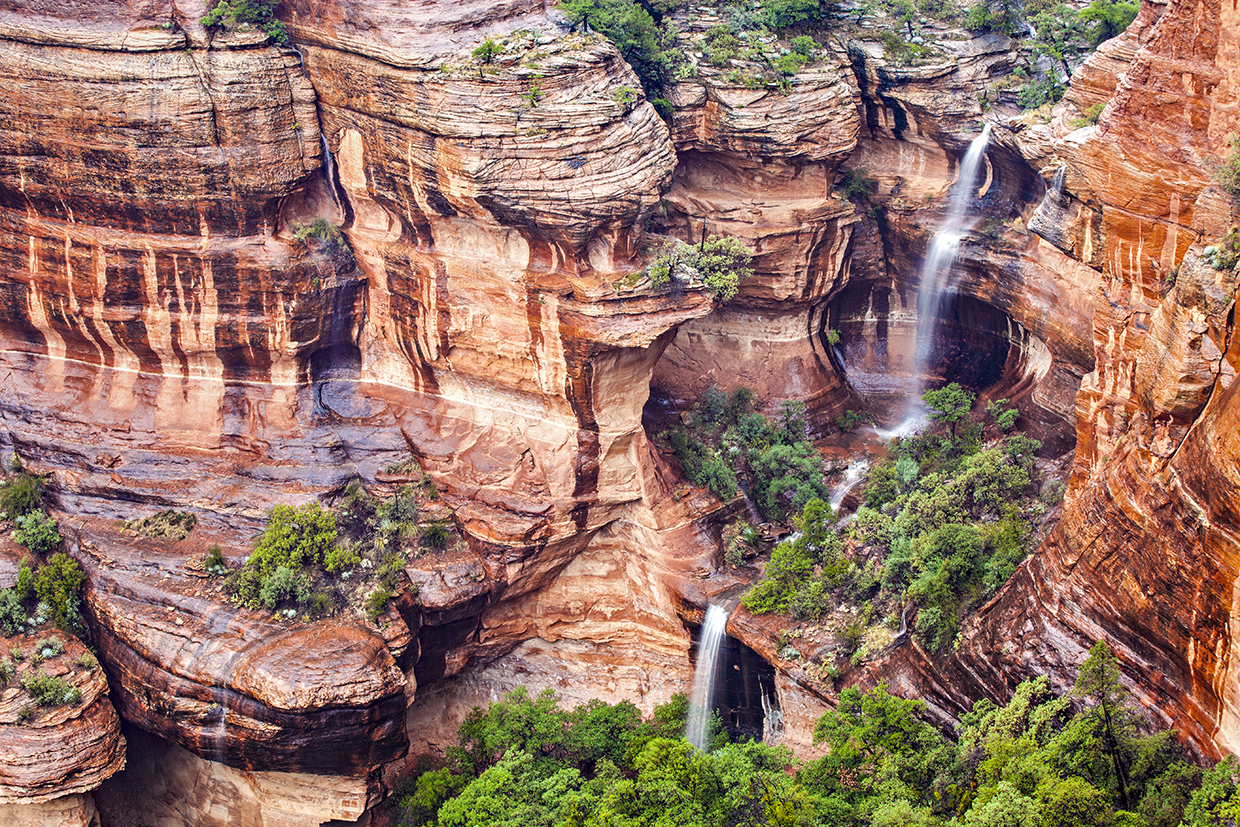 Movement: The eye moves from the falls to the cliff slick-rock areas.